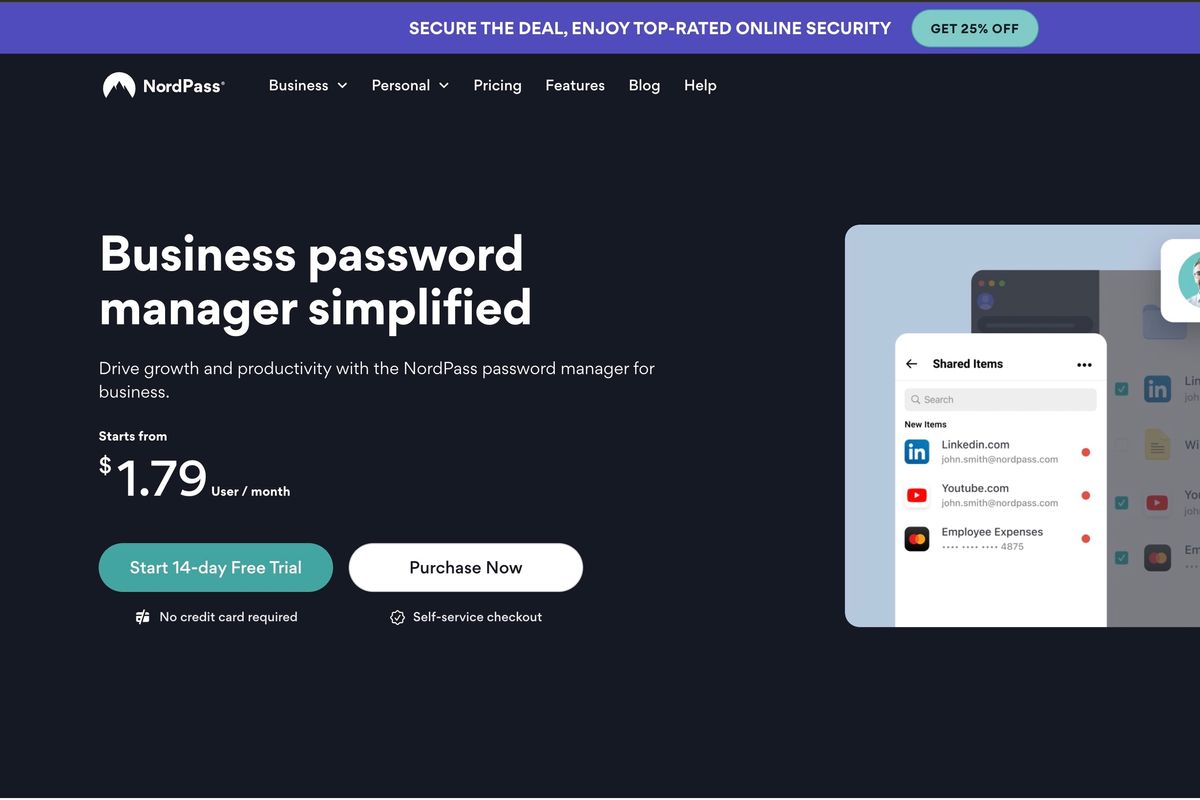 But here's some exciting news. We have special offers for you and your business. You can now enjoy a 25% discount on his 2-year business plan with NordPass. Take advantage of the opportunity to strengthen your online security with solutions you can trust.